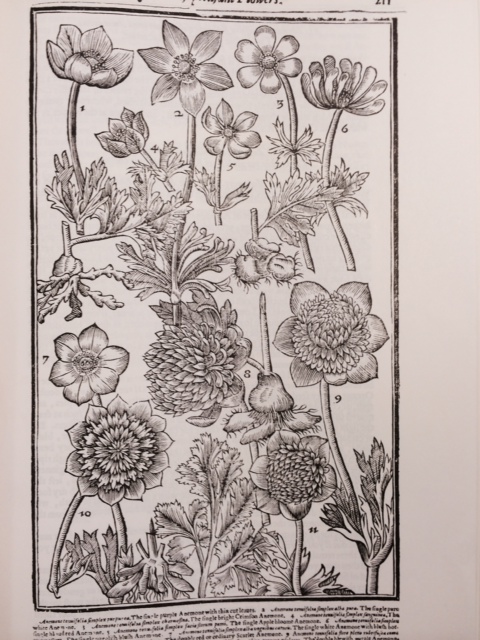When we think of primroses, the first thing that comes to mind are the ‘Pacific Giant’ hybrid primroses we see in garden centers. Actually hundreds of species of Primula are in existence, and some species have been brought into gardens and significantly developed. The auricula primroses, members of the species P. auricula, have been grown in gardens since the 1500s. They have evergreen leaves that curl around in a way that resembles the ear of a bear. When first cultivated, they were called ‘Bear’s Ears’. Charles l’Ecluse (known as Clusius) is the first person known to have grown auriculas in a garden. This was after 1573; he grew two kinds. The first auriculas grown in England are illustrated first left above, in a woodcut from Gerard’s Great Herbal of 1596. By 1639, at least 15 different colors and even striped forms were grown. Auriculas were a popular plant beginning in the early eighteenth century when keen collectors began to grow and exhibit them in competitions. These growers were called ‘florists’. Several specialized classes of auriculas came into existence over the following centuries. Potted plants were (and still are) exhibited in flower on black painted shelves in a stage-like display. The black background highlights the beautiful colors of the flowers. Auriculas do have an extremely wide color range, much greater than practically every other kind of flower. The second picture shows a tawny-colored auricula, a color popular in the 1600s. Auriculas were extremely popular in the nineteenth century, but curiously, are not well-known today.